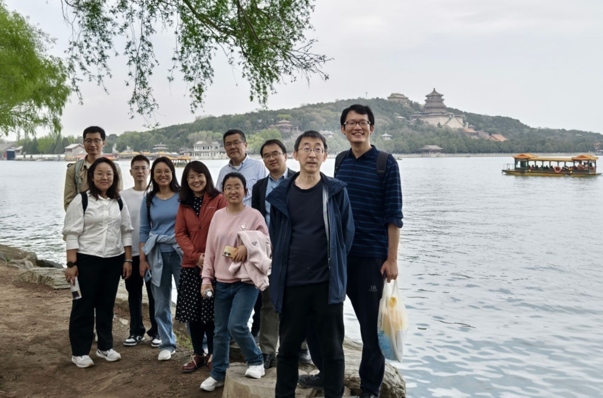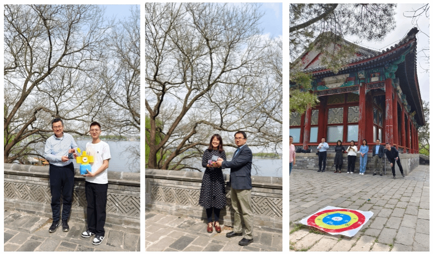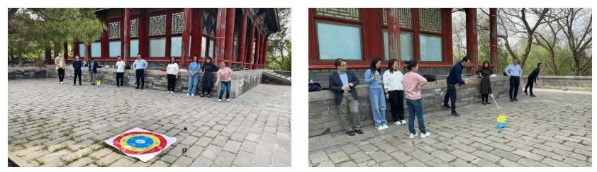 阳春三月的颐和园桃红柳绿,海棠卧波,黑天鹅幼雏依偎成趣,更有喜鹊松鼠跃然林间;游人或于桥上盛装留影或于廊下抚弦放歌,处处一派盎然的生气。教职工们沿西堤和后山御道健步前行,在畅谈学院发展和烟火家常的同时尽情感受皇家园林的历史与自然之美。登上畅观堂楼台,红墙绿瓦之下水天一色,随后开展的趣味运动会设置了中国传统项目——投壶和北外特色项目——沙包掷准。教师们童心勃发、棋逢对手,现场欢声不断。赛后,学院领导同志为优胜教师颁发了纪念奖品。