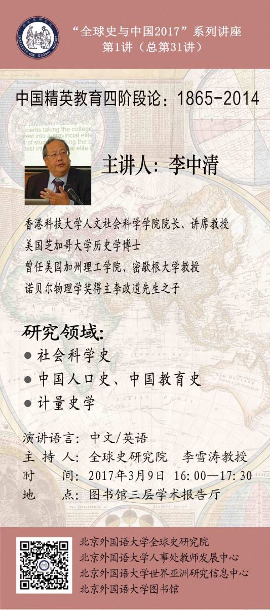 “全球史与中国2017”系列讲座第1讲 李中清:中国精英教育四阶段论,1865-2014
