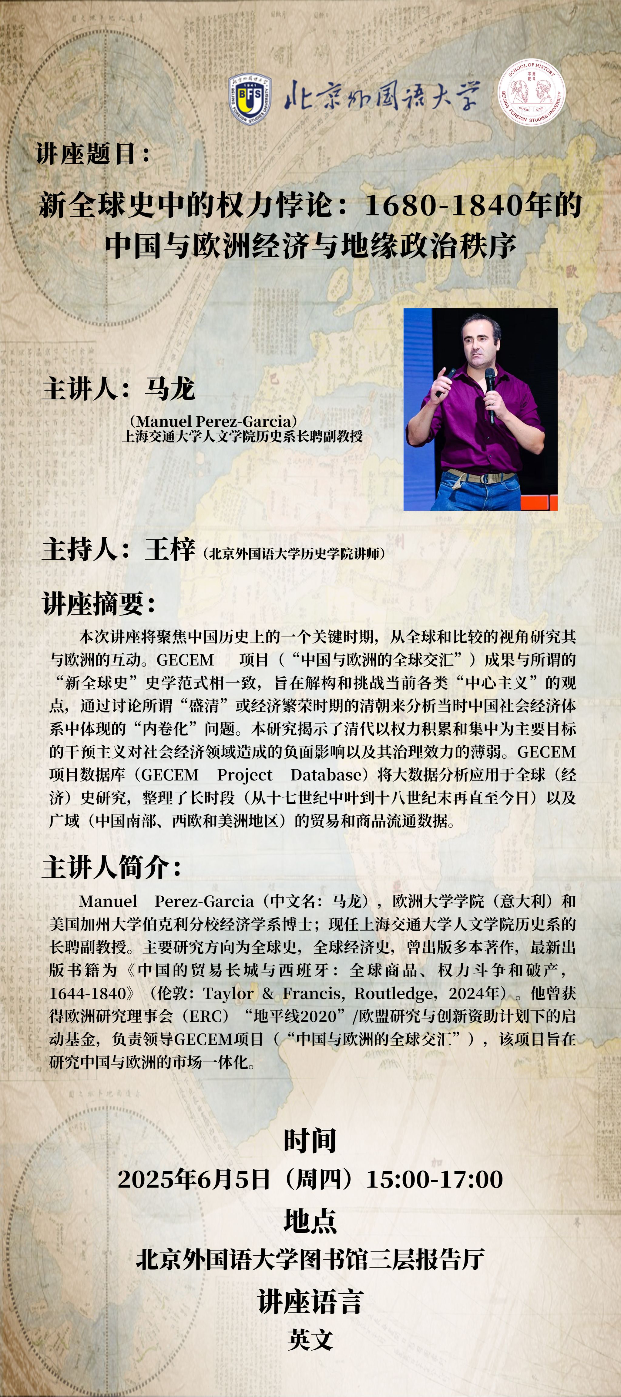 讲座通知│Manuel Perez-Garcia:新全球史中的权力悖论:1680-1840年的中国与欧洲经济与地缘政治秩序