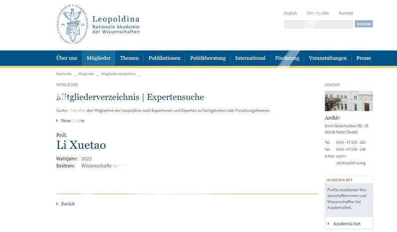 据德国国家科学院——利奥波第那科学院(Leopoldina)网站,tyc86太阳集团院长李雪涛教授于近日当选为2023年德国国家科学院院士。