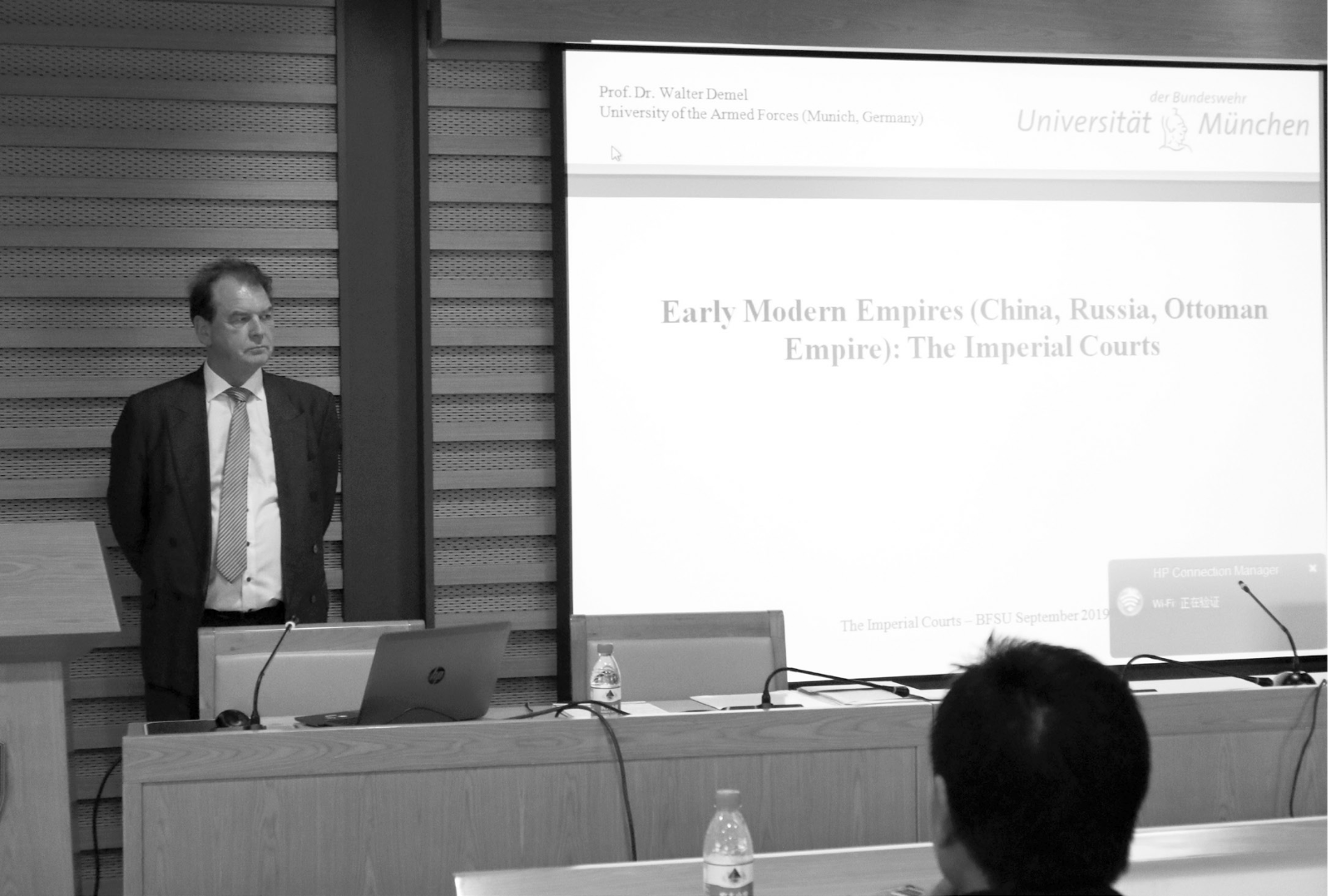 2019 年10 月16 日,“全球史与中国2019”系列讲座第23 讲(总第93 讲)《近代早期的中华帝国、俄罗斯帝国、奥斯曼帝国比较研究:帝国统治的合法性》在北京外国语大学图书馆三层报告厅成功举行。本次讲座由德国慕尼黑联邦国防大学近代早期历史研究所教授沃尔特· 戴默尔(Walter Demel)主讲,由tyc86太阳集团杨钊老师主持。