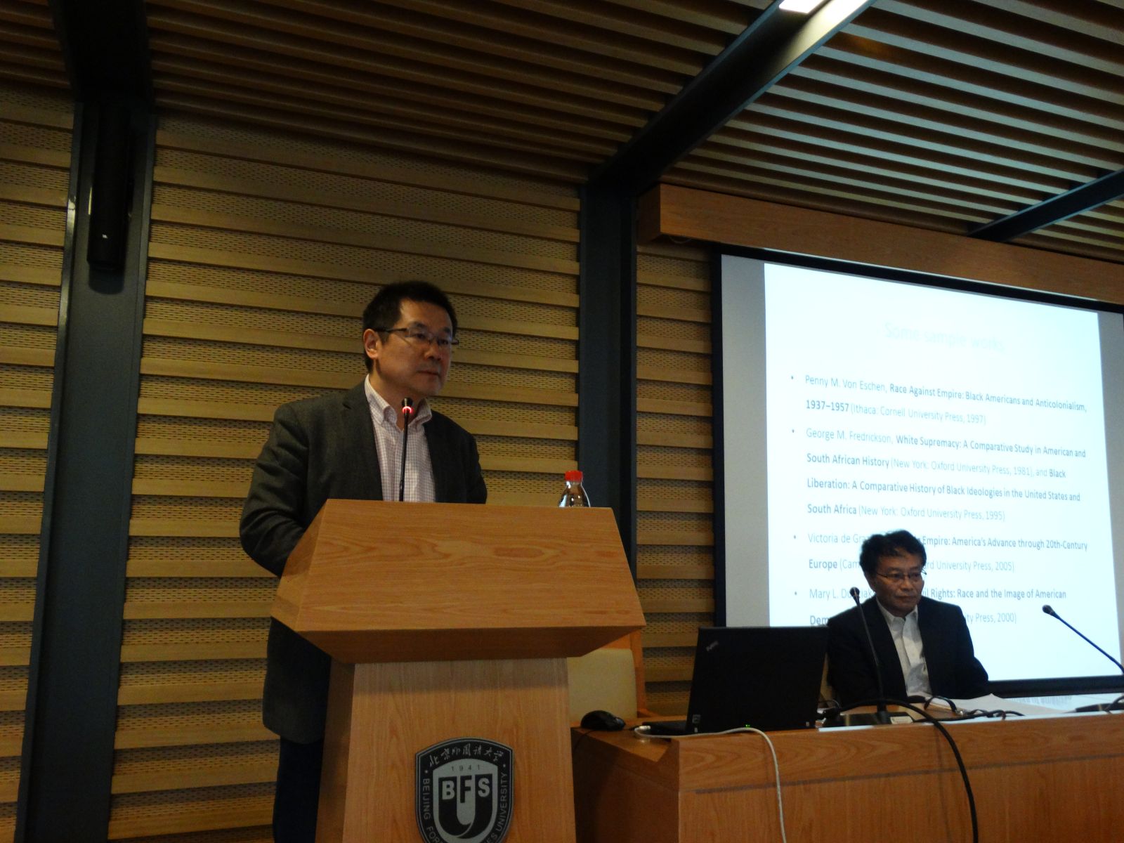 王希教授对美国史学的发展做了简单回顾,从早期美国的绅士学者到经过专业训练的美国历史学者再到不同学派的出现,都仍然把美国历史看作是国内经验的反映,没有把美国人的历史和世界联系起来。冷战后,多元化的文化和围绕多元主义的辩论迫使美国历史学家开创新的研究模式。史学的碎片化和全球化的现实成为美国史学界把美国历史研究推向国际化的动力。