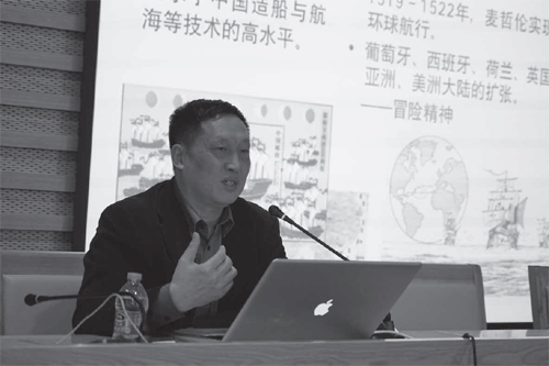 4 月13 日下午,“全球史与中国2016”系列讲座第四讲(总第17 讲)在我校图书馆三层举行。中国科学院自然科学史研究所所长张柏春研究员为大家带来了题为《全球化语境中的中国近现代科学技术》的讲座。讲座由全球史研究院院长李雪涛教授主持。
