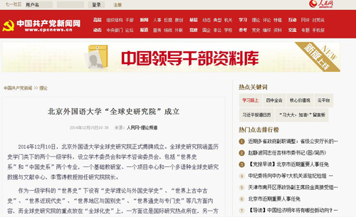 人民网:北京外国语大学“全球史研究院”成立